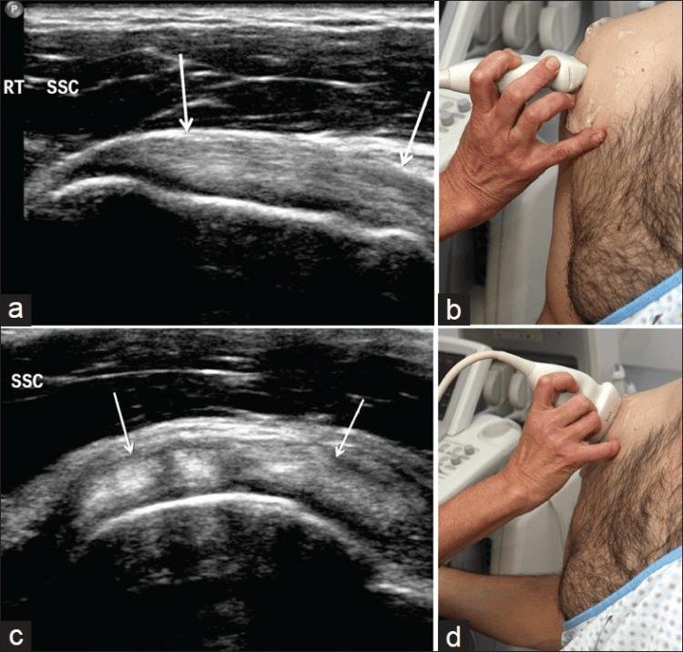 El conocimiento de las técnicas óptimas, la anatomía normal, las maniobras dinámicas y las condiciones patológicas es esencial para la interpretación y la ecografía correctas.[4] La ecografía del hombro debe seguir estrictamente el protocolo de obtención de imágenes. [5] La comparación entre el lado dañado y el contralateral puede ayudar a llegar a conclusiones diagnósticas.